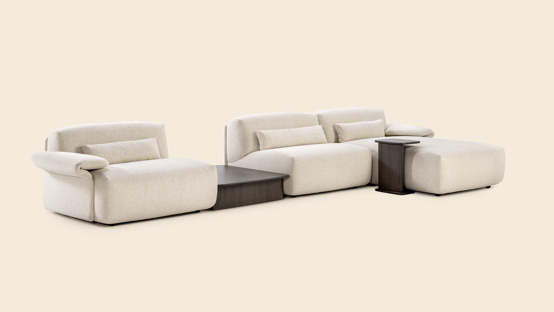 Ultimate relaxation reveals itself at a glance. This is Olen, a design by Yabu Pushelberg. A modular program, purely created to combine style and comfort in a unique way. You can see it in the soft fold of the armrest, the rhythmic silhouette, and the inviting depth of the seat: with Olen, you bring a space to life.